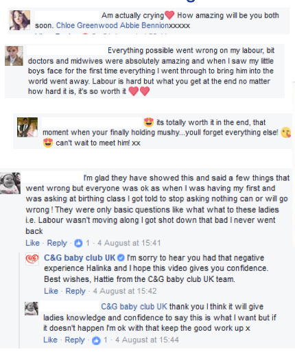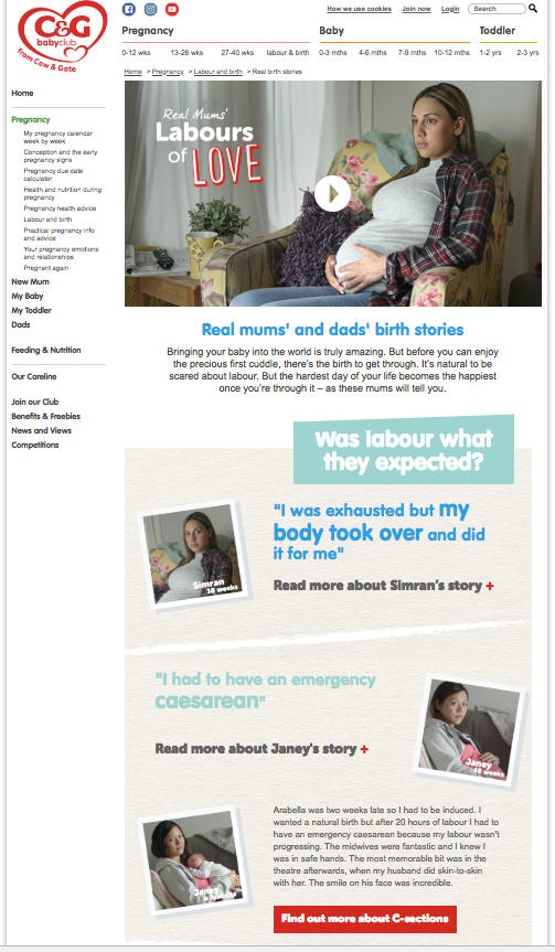 The film was hosted on YouTube and candgbabyclub.co.uk. Shorter edits were used on Facebook to drive awareness and spark conversation. It also started a trend for before and after photos of mums holding their babies where their bumps had been. We received a staggering 800 photo uploads and 500+ positive reactions.