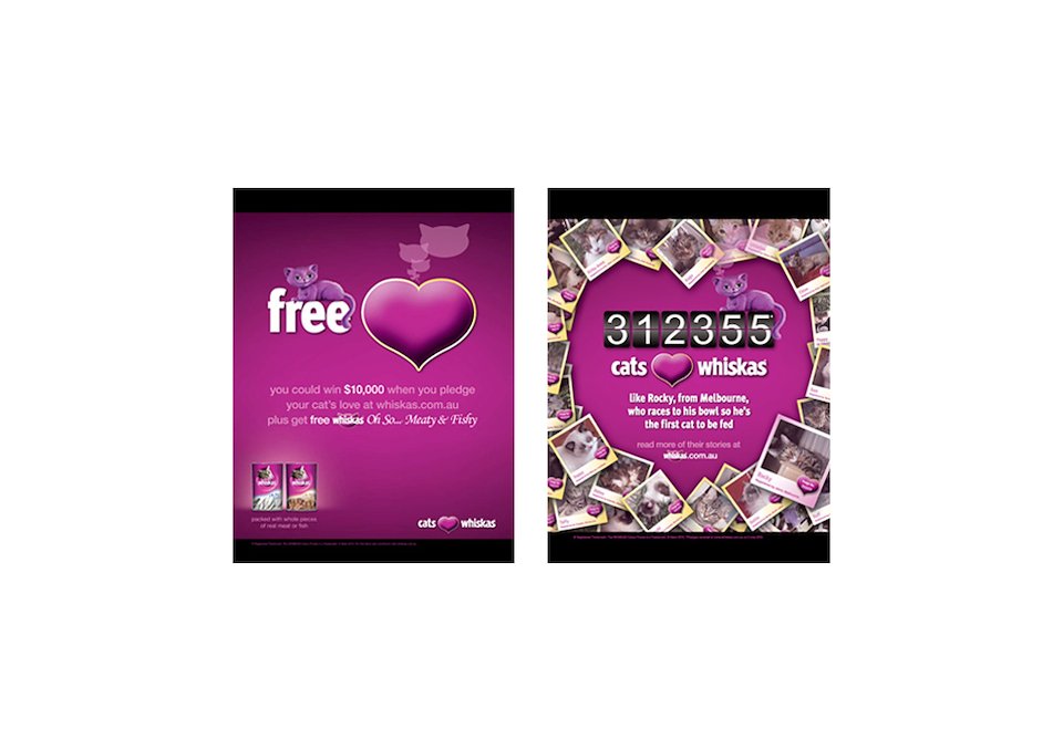 To get involved, owners pledged their cat’s love online and told us why their cat loved Whiskas. In return, they received a free sample of Whiskas Oh So…