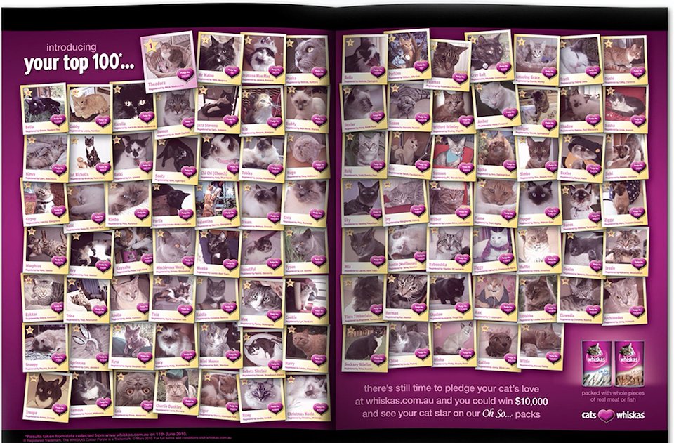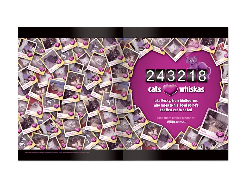 Their real stories revealed real love, real quick – with over 20,000 declarations of love online in less than a month. We sorted the data and produced location specific press ads. We also created bespoke packaging, dedicated to individual cats.